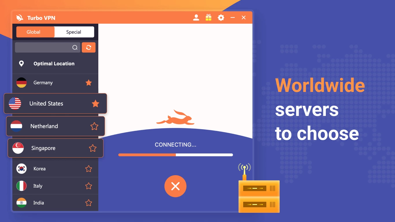 Turbo VPNобеспечивает надежную защиту вашего сетевого трафика от взлома. Это лучший выбор, чтобы избежать угроз взлома, которые могут повредить трафик вашего веб-сайта, и предложить надежный и защищенный способ использования Интернета.